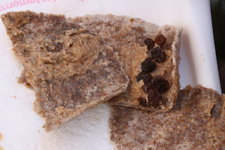 Spread almond butter on tortilla. Add 1/2 banana (we also tried this with a couple roasted bananas which was divine!) Top with some raisins (ants on a log style). Roll up and serve. If you have a young kiddo, a nice adaption is to roll it up and then cut it up in smaller pieces with kitchen scissors. Yummy, easy goodness!